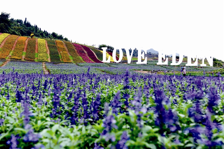 在原有的百畝葡萄園基礎(chǔ)上,“伊甸園”重新規(guī)劃布局,并種植花卉20余種,如薰衣草、西洋杜鵑、太陽花、萬壽菊、小花百日草、硫化菊、矮牽牛、一串 紅、小花石竹、大(。P仙、波斯菊、中國紅、火炬、大花百日草;