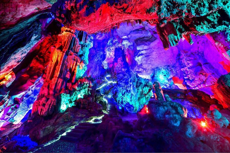 美輪美奐的巖洞層出不窮,紅橙黃綠青藍(lán)紫,顏色也多彩多樣,洞內(nèi)景觀豐富,有鐘乳石、石筍、石柱、石瀑布、石旗、石花等巖溶景觀。這里肯定會成為孩子們歡樂的天堂。