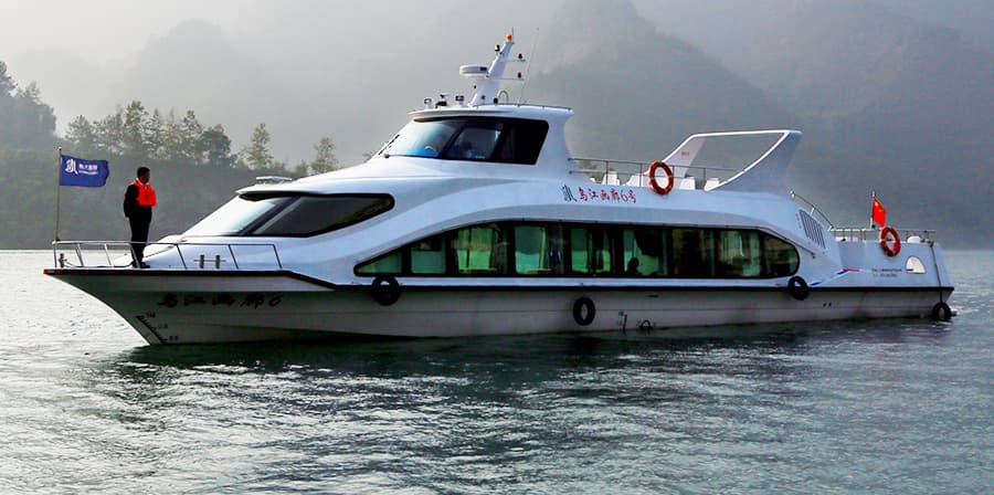 烏江全長1037公里,是一個不可多得的多姿多彩的旅游景區(qū),景區(qū)內(nèi)山巒雄奇、一里一景、風光旖旎、峽岸奇峰對峙、灘險壑幽、飛瀑流泉、嵯峨怪石、古樹蒼藤、珍禽異獸、景觀奇特、蔚為壯觀,有“千里烏江,百里畫廊”之美譽。烏江的山,有夔門之雄、三峽之壯、峨眉之秀;烏江的水,碧若琉璃。清代詩人翁若梅贊譽“蜀中山水奇,應(yīng)推此第一”。景區(qū)先后榮獲中國旅游總評榜“年度最受歡迎景區(qū)”,在最喜愛的旅游目的地(線路)評選活動中被評為“最詩意”獎。公司擁有中式仿古畫舫2艘(載客量為150人/船),現(xiàn)代豪華游艇3艘(載客量為70-80人/船)。