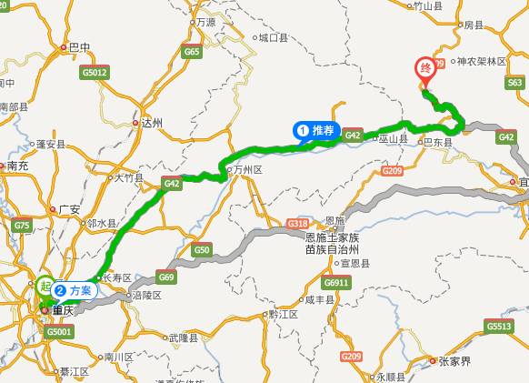 主城—長壽—墊江—萬州—云陽,—巫山巴東—興山—神農(nóng)架,單程約600公里,車程約9小時