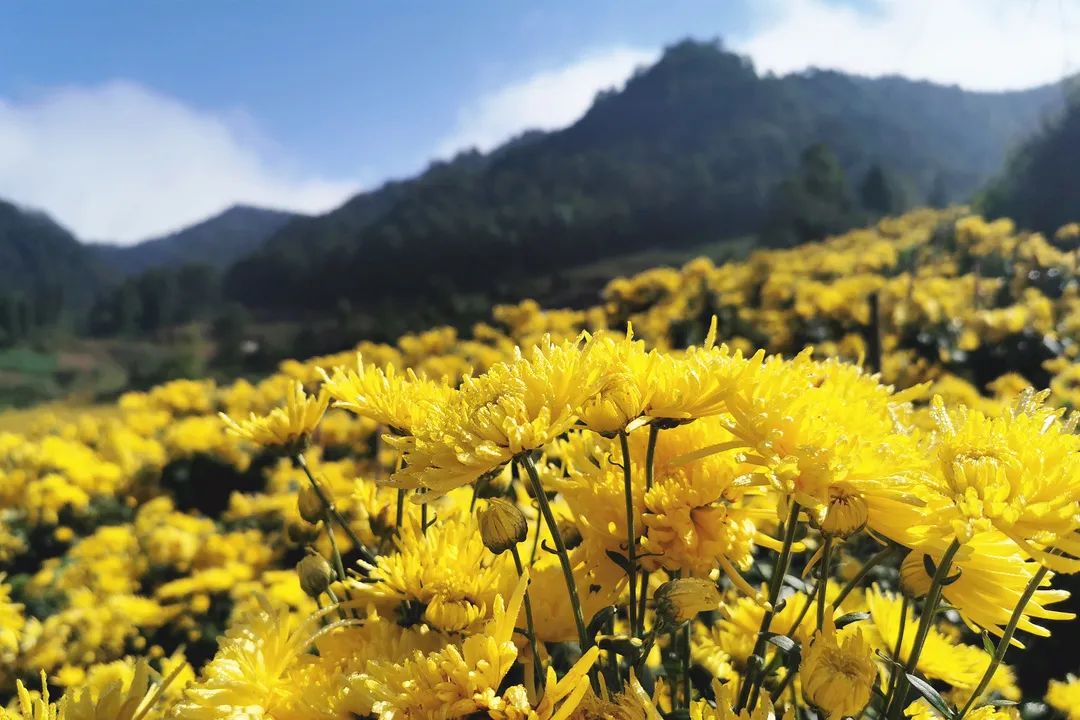 01東溫泉風(fēng)景區(qū)一年一度秋風(fēng)勁吹開了黃金林村九花谷的300畝菊花