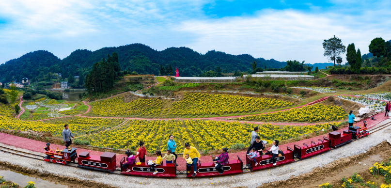 游玩結(jié)束回到東溫泉場鎮(zhèn)也能欣賞到特色菊展