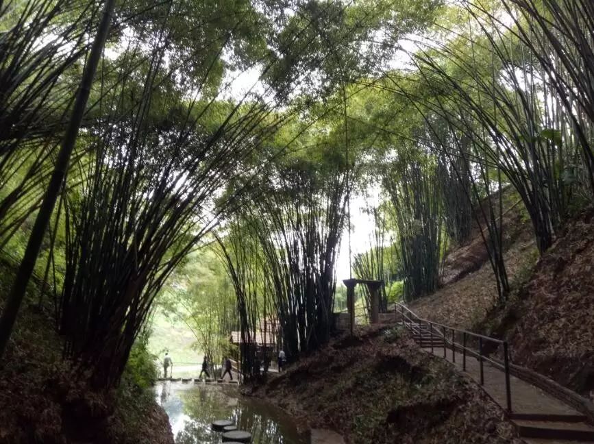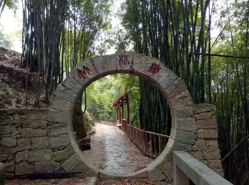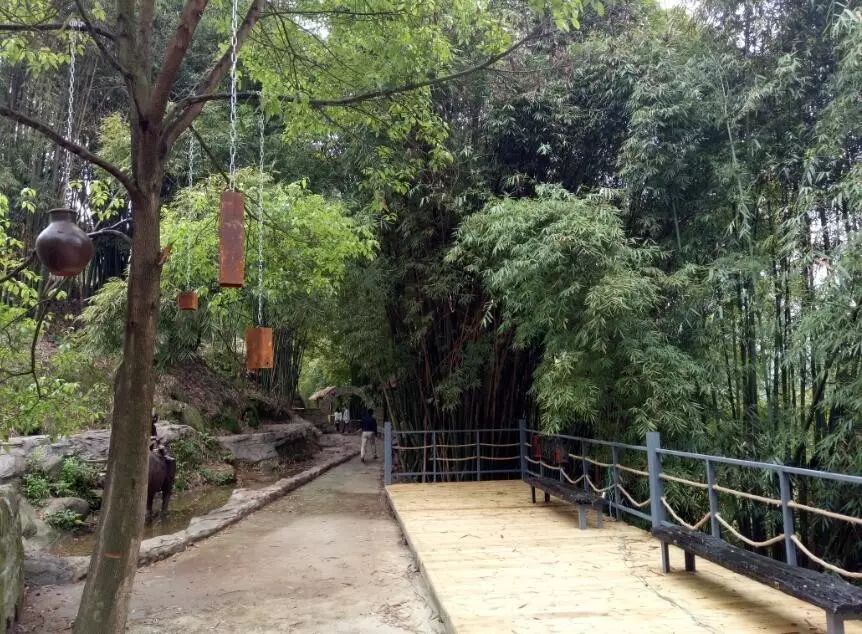 進(jìn)入林中,你會(huì)發(fā)現(xiàn)別有洞天,竹林中掩映著亭臺,小橋流水繞期間,有些陶淵明筆下世外桃源的韻味。