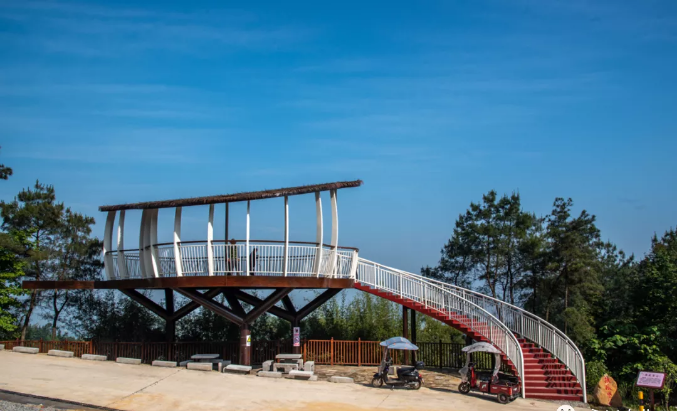 園區(qū)內(nèi)配套設(shè)施完善,建設(shè)有“獼猴桃長廊”?勺尶腿嗽趧陬D之余靜靜欣賞鄉(xiāng)村景色