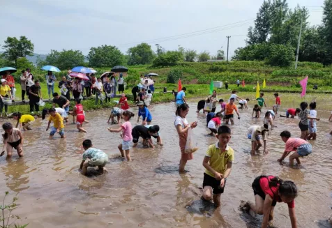 5月農(nóng)事體驗(yàn),采摘蔬菜瓜果(小南瓜、花菜、桑葚等),種苞谷,插秧摸魚等農(nóng)事活動;