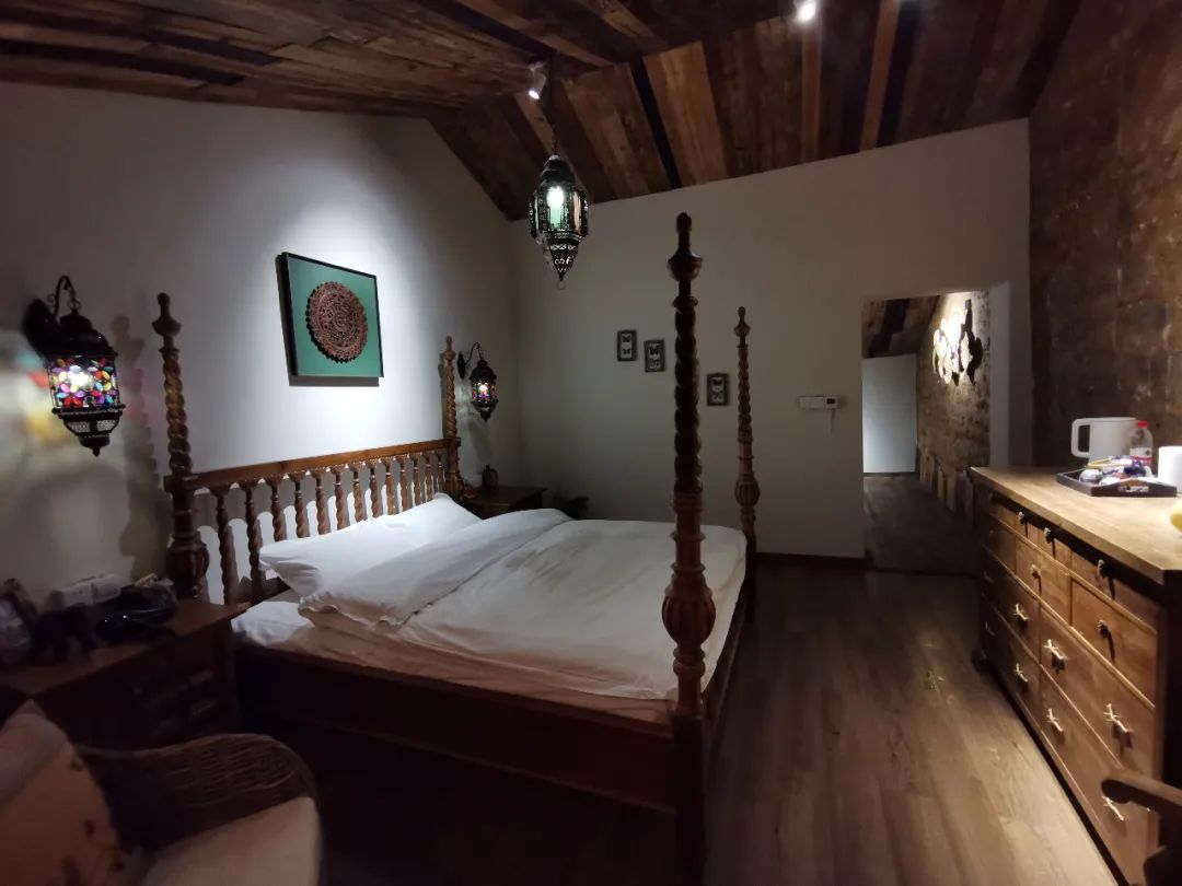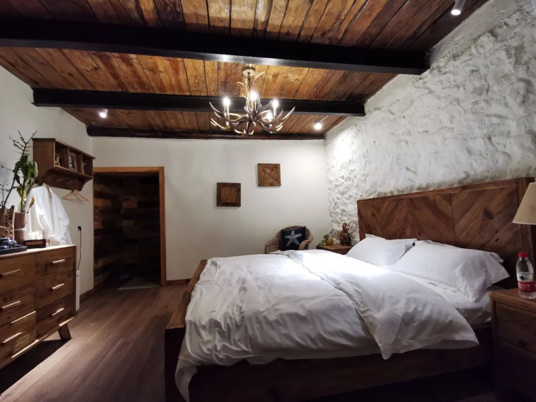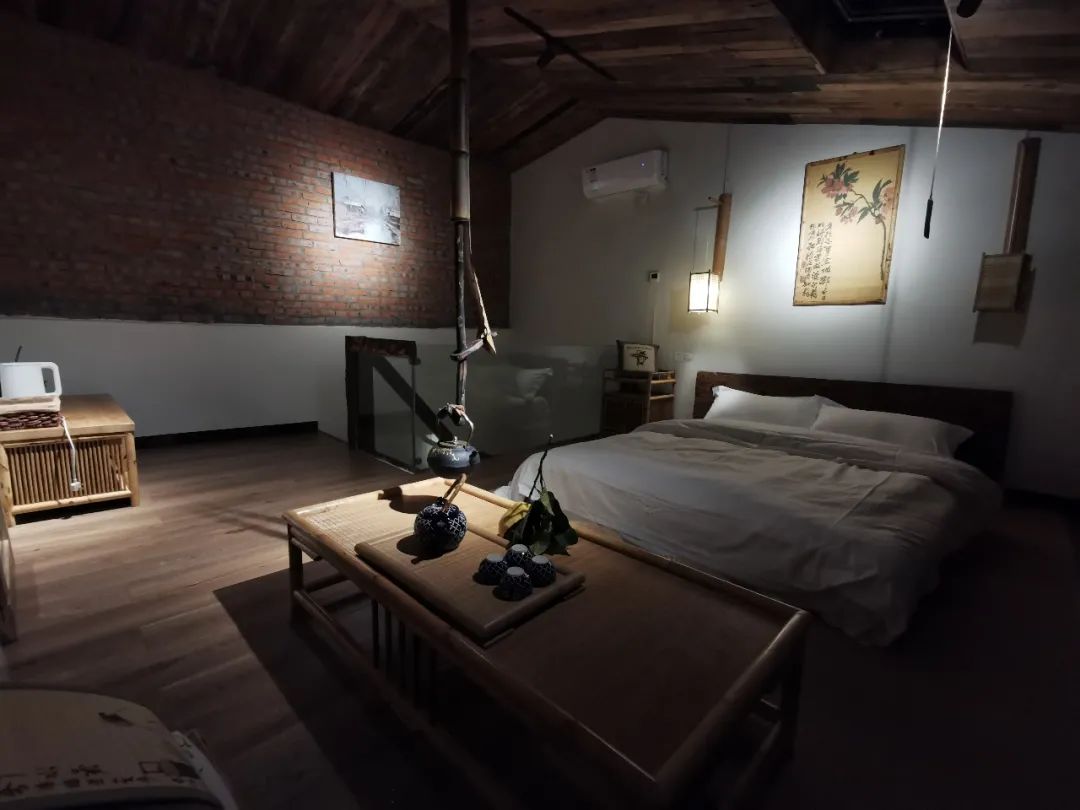 整個(gè)“竹林里”房間不多,一共8間房,每一間都不同:簡(jiǎn)約、 中式 、古樸 、又不失可愛。屋里的天窗,靠床的榻榻米,每一間屋子都有空調(diào)和地暖。