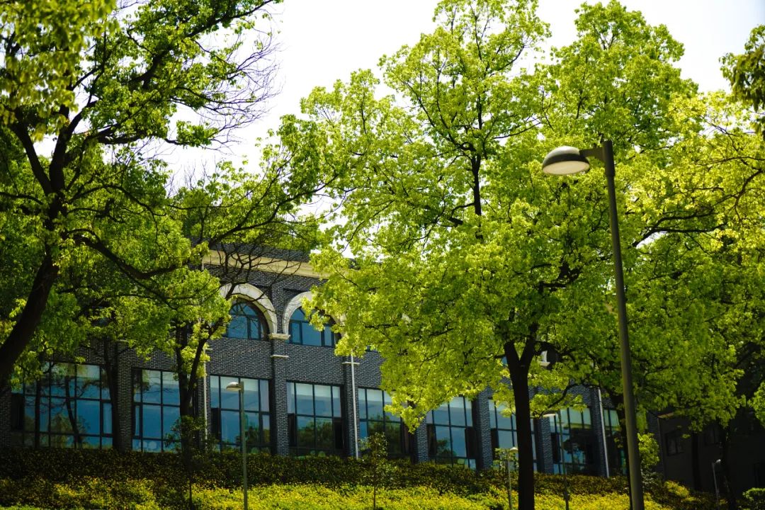 沿著山路一路向前,就能看見度假區(qū)。踏進(jìn)叢林深處,香樟樹錯(cuò)落成林,林木參天,鳥鳴啾啾,奏響山間樂(lè)章。路邊的淳樸建筑突然闖入,灰磚砌成的矮墻,保留了上世紀(jì)七八十年代的老房,在一片翠綠掩映中透出質(zhì)樸且不失古典的韻味。
