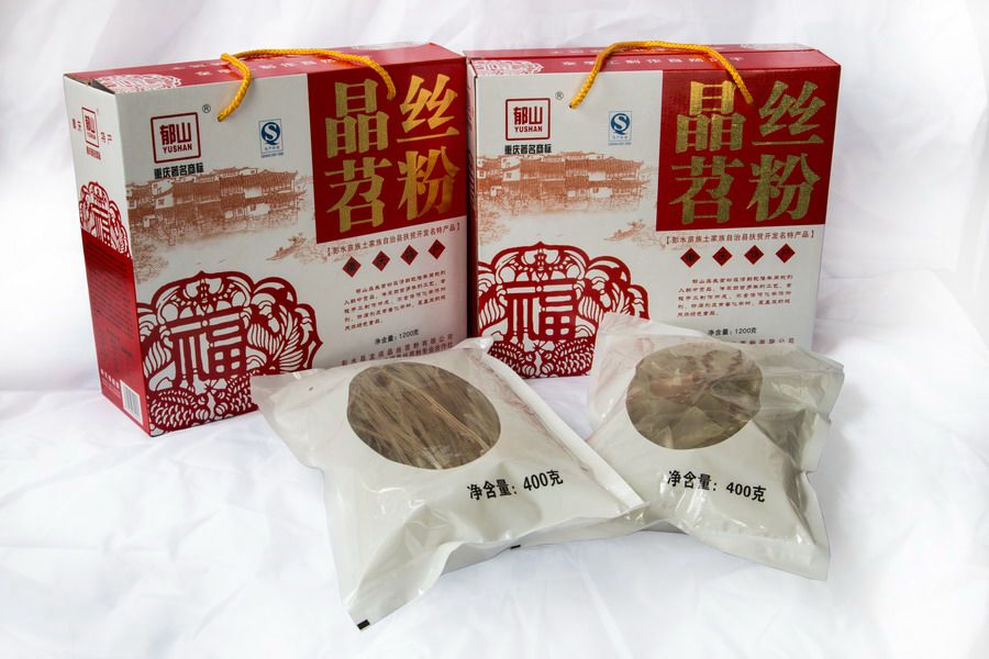 “郁山”晶絲苕粉產(chǎn)地在風(fēng)景秀麗的武陵山區(qū)郁山鎮(zhèn),以本地優(yōu)質(zhì)高淀粉紅薯為原料,延用傳承了幾百年的手工工藝精制而成,在清朝乾隆年間就列入朝中貢品,產(chǎn)品富有深厚的文化底蘊(yùn),被譽(yù)為“山中珍寶”。傳統(tǒng)的手工工藝加上本地獨(dú)特的土壤和水質(zhì),使得精制而成的粉絲晶瑩剔透、不粘不稠、香遠(yuǎn)溢清而聞名全國(guó)。