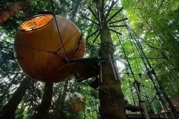 加拿大溫哥華島自由精靈球屋懸浮在森林中的球形樹屋非常神奇,住在里面住一晚絕對是一次神奇的體驗。