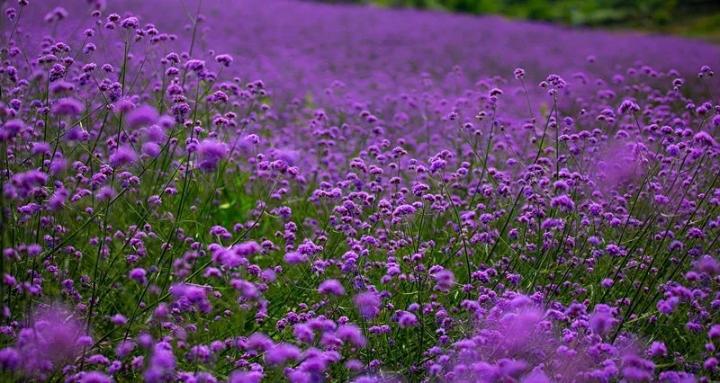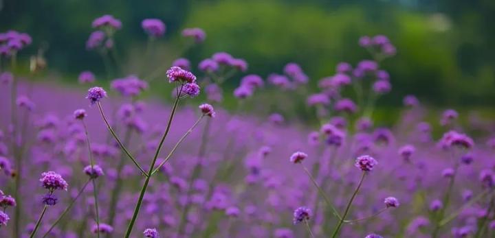 花朵呈紫紅或淡紫色星星點(diǎn)點(diǎn)地連成一片形成充滿夢(mèng)幻色彩的花海陽(yáng)光的微粒輕輕掠過(guò)微風(fēng)一吹花兒搖曳起一波波紫色的浪花蝴蝶逐浪而行紫色的夢(mèng)幻便拖到了天邊