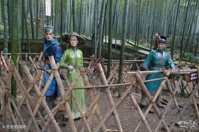 外景拍攝地介紹:2003年張藝謀在拍攝電影《十面埋伏》時(shí),經(jīng)過多方考察,來到永川茶山竹海,發(fā)現(xiàn)扇子灣竹海竹林密集,竹子竹型挺拔,非常適合劇中情景的需要,因而在此選址拍攝。此部電影的演員陣容強(qiáng)大,國際明星章子怡、劉德華、金城武和宋丹丹等都參與此部影片。