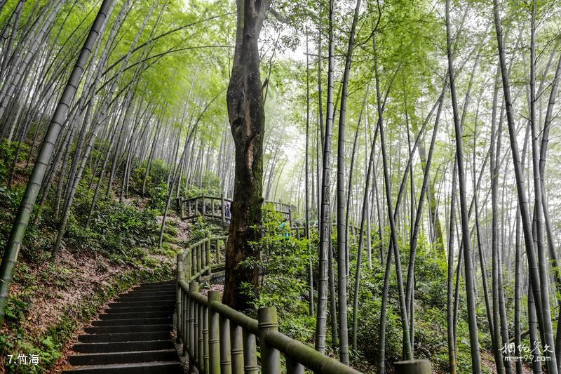 茶山竹海主要有桂山茶園、青龍茶園等三大片茶園,是“亞洲第一大連片茶園”,茶林廣袤,形態(tài)奇異,環(huán)山繞谷,茸翠如畫。