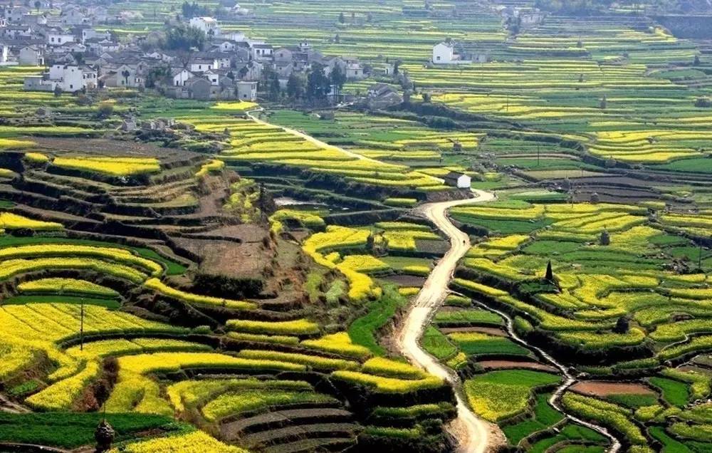 各色花朵競(jìng)相開放,讓鄉(xiāng)野出落的更加夢(mèng)幻。有趣的是,梯田就散步在花間,一層層、一片片花梯重重疊疊,梯田與花朵都因此多了幾分生機(jī)與活力。其中,規(guī)模最大的油菜花梯田又因金黃色澤自帶藝術(shù)油畫光澤頗受好評(píng)。