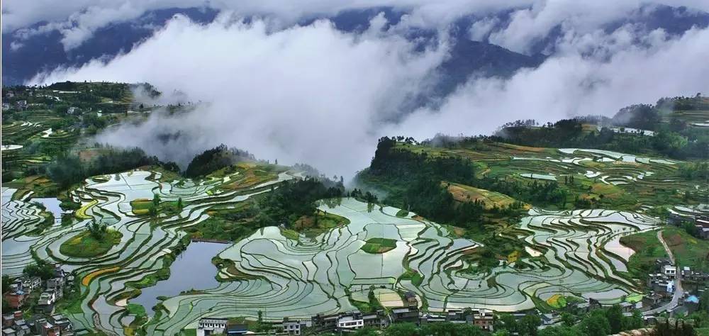 春末初夏,梯田的風(fēng)景也異常美麗,因多雨水的緣故,綺麗多姿的茫茫云霧常常如期而至,讓梯田的視效越發(fā)豐富起來。