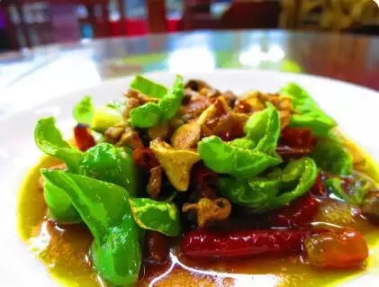 花椒雞也是一絕,辣而不燥,吃飽喝足之后可以游覽毗鄰鐵山坪的著名古跡羅漢洞、泛音寺、蠻子洞、櫻桃采摘基地、金夫人攝影基地。