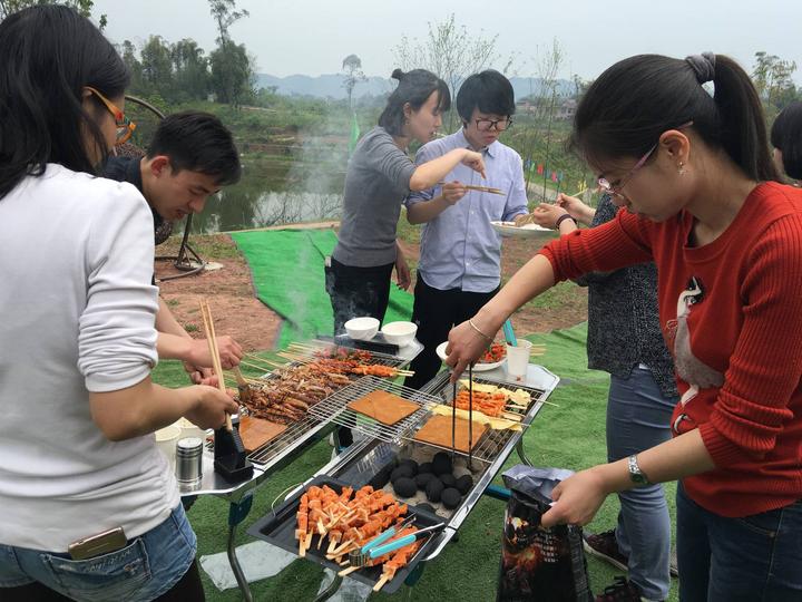 上周末是我的生日,選擇了不一樣的慶祝方式,27歲的我們,不再留念主城的KTV,不再留念主城的麻將桌,不再看電影。 我和朋友們,經(jīng)過篩選,決定去一個新發(fā)現(xiàn)的“美櫻花!本皡^(qū)戶外燒烤,不僅吃了燒烤,還可以和餐廳的豆花飯,海帶豬蹄湯一起吃,很很給力。 不得不說,很巴適,上圖給大家顯擺一下。 燒烤架子50元一個,送1包3斤的碳,