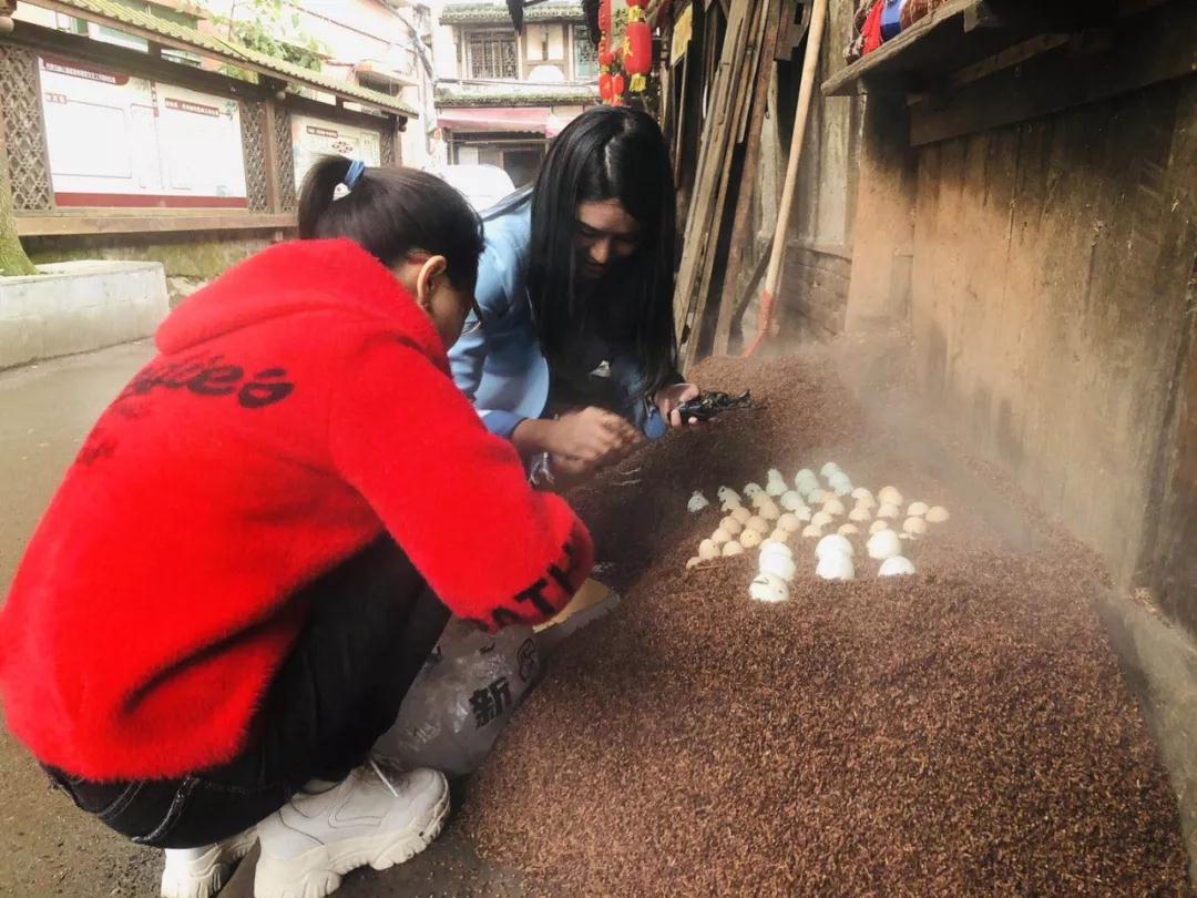 好了好了接下來就是巴小妹此行最期待的了老板將釀完后的酒糟撈出鋪在店門口大約鋪50cm厚時開始埋蛋