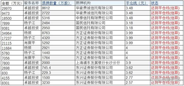 當(dāng)前對應(yīng)市值僅剩9.7億,10個億的差額,可把幾家作為質(zhì)權(quán)人的信托公司、證券公司們坑苦了。