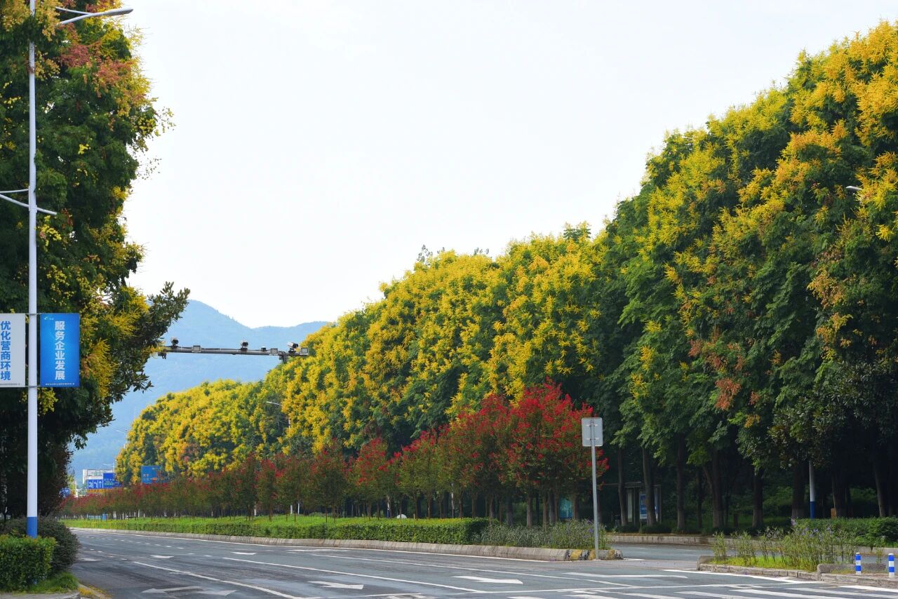 方正大道兩側(cè)自中科院重慶研究院延至兩江半導(dǎo)體產(chǎn)業(yè)園1.7公里欒樹(shù)紛紛進(jìn)入盛花期細(xì)碎的金花綴滿(mǎn)枝頭不像菊花的孤傲,不似桂花的濃烈從樹(shù)梢到路邊,目光所及皆是暖意