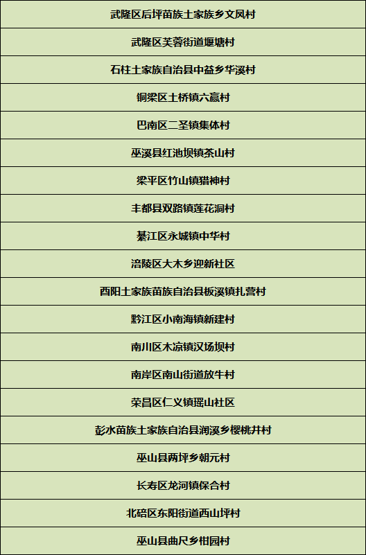 在各地遴選推薦的基礎(chǔ)上,經(jīng)專家評審和公示,文化和旅游部、國家發(fā)展改革委決定將680個鄉(xiāng)村列入全國鄉(xiāng)村旅游重點村名錄。其中,重慶有20個村入選!