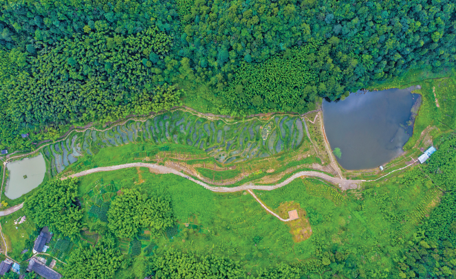 ▲梁平竹山鎮(zhèn)獵神村梯塘小微濕地全貌。圖:梁平微發(fā)布