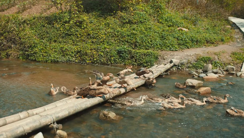 在云南紅河做調(diào)研時,村里人告訴他本來有座石橋,因為下雨發(fā)大水沖走了,所以才有人造了這座竹橋。