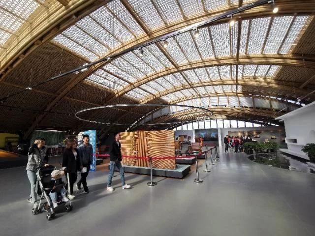 有了之前造橋造房的經(jīng)驗,他們連造1600平米的展館都不在話下。5000根直徑巴掌大的毛竹建成的圓竹拱,讓北京世博園藝博覽會的“竹之眼”展館,成了世界上跨度最大的竹結(jié)構(gòu)展館