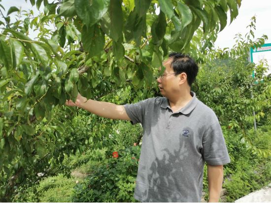 江波指導(dǎo)脆紅李產(chǎn)業(yè)建設(shè)。市委宣傳部幫扶集團(tuán)駐鄉(xiāng)工作隊供圖