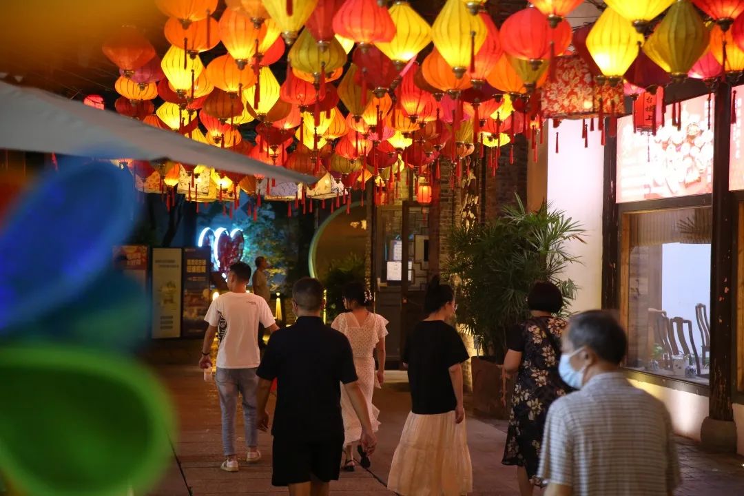 西流沱小鎮(zhèn)的川劇變臉、俠客巡游、泡泡魔法秀、小丑表演等街頭巡演精彩紛呈,報恩塔的燈光秀每晚定時呈現(xiàn)。