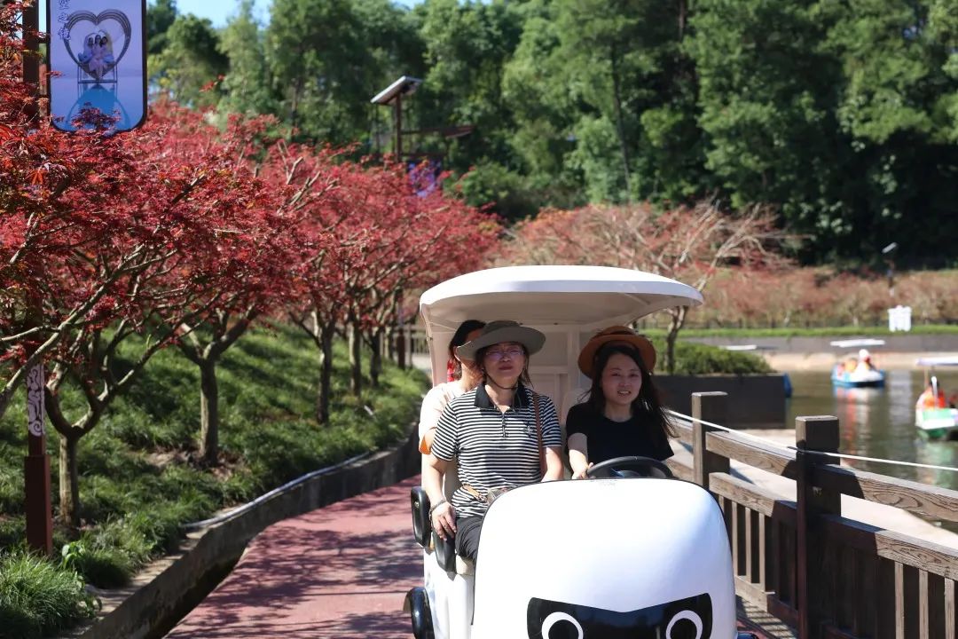 南湖多彩植物園的紅楓重新煥發(fā)生機,觀賞漫天紅楓,領(lǐng)略自然美景的游人如潮,帶動鄉(xiāng)村旅游市場活躍興旺。