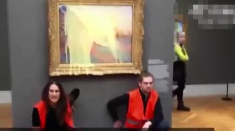 當?shù)貢r間23日,德國波茨坦巴貝里尼博物館一幅正在展出的莫奈畫作被氣候保護主義者潑了土豆泥。