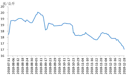 大型規(guī)模養(yǎng)殖場(chǎng)年底出欄生豬節(jié)奏加快,散戶的積極性亦較高,多數(shù)地區(qū)短時(shí)供應(yīng)過剩,生豬價(jià)格連續(xù)下滑。下游需求利好不足,豬肉銷售情況較差,屠宰企業(yè)多降價(jià)促銷。