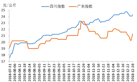 四川、廣東豬肉價(jià)格運(yùn)行走勢(shì)圖
