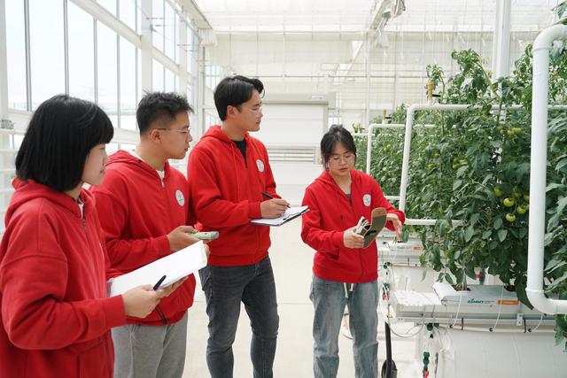 ↑在位于平谷區(qū)峪口鎮(zhèn)的京瓦溫室園藝示范園葉菜無土栽培溫室拍攝的西樊各莊科技小院的大學(xué)生