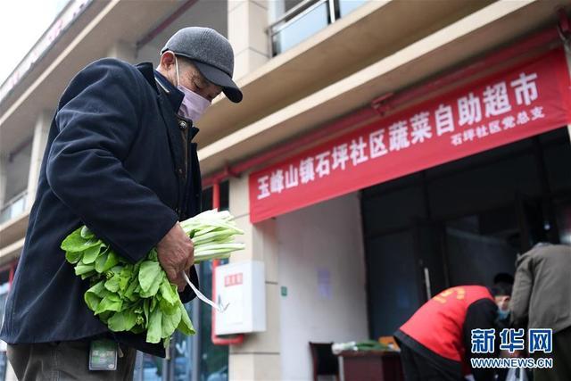 2月6日,當(dāng)?shù)鼐用裨谥驹刚叩膮f(xié)助下在社區(qū)蔬菜自助超市選購蔬菜。新華社記者 唐奕 攝