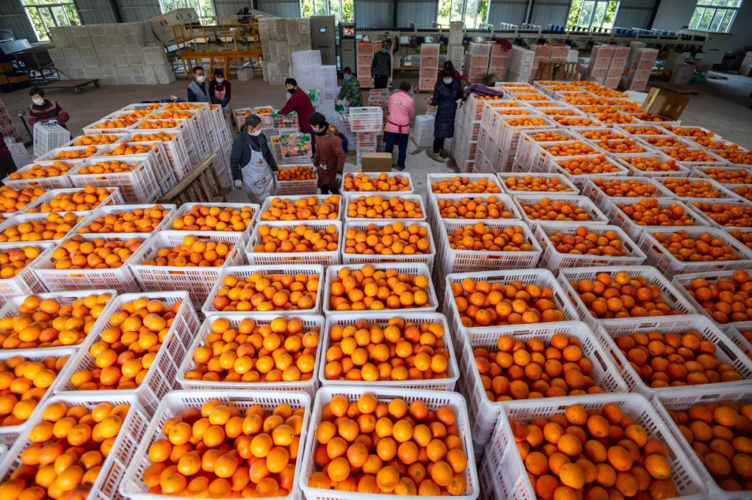 ▲萬州區(qū)甘寧鎮(zhèn)黑馬村,裝箱后的玫瑰香橙將進行網(wǎng)上銷售。 龍帆 攝/視覺重慶
