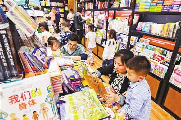 圖③:5月5日,重慶光環(huán)購(gòu)物公園西西弗書店,不少市民帶著小孩看書、購(gòu)書。首席記者 龍帆 攝/視覺(jué)重慶