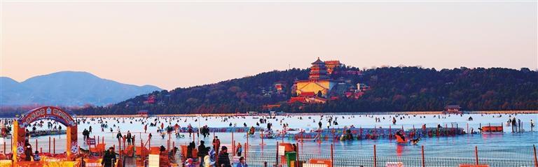①游客在北京頤和園昆明湖滑冰場(chǎng)感受滑冰樂(lè)趣。元旦過(guò)后,北京各大公園陸續(xù)開(kāi)展冬季冰雪游園活動(dòng),眾多的游樂(lè)項(xiàng)目滿足游客不同需求。張子魁攝(中經(jīng)視覺(jué))