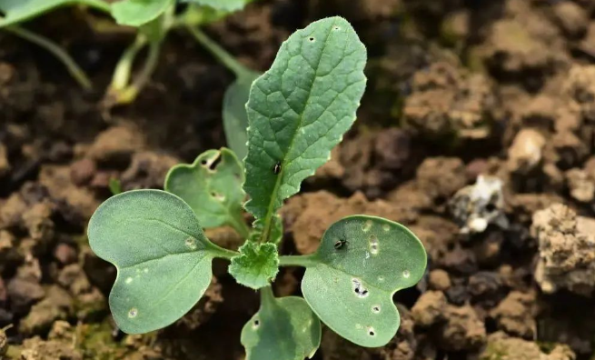 蘿卜剛出葉片不久,葉片上有許多的圓形小洞,一種很小的跳跳蟲,藥打完了又來了,不知有何好辦法?
