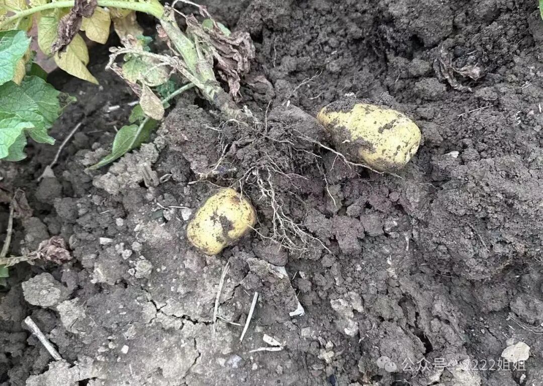 土豆的田間管理,和其它蔬菜比起來,真可以算得上是“躺平式”的。一旦種下,覆土培壟,之后便幾乎無需過多操心。若是雨水充沛,連澆水都可省去;害蟲也鮮少上門打擾。地底下的世界,在寂靜中自顧自地生長醞釀,除了秧苗一日日拔高,你再看不見別的動靜。整個生長期里,要做的無非是偶爾培培土、除除草。直到收獲那日,一鋤頭掘開泥土,便能發(fā)現(xiàn)底下竟藏著那樣多的“寶藏”。這份收獲,猶如開啟自然贈予的盲盒,叫人充滿無限的期盼與喜悅!