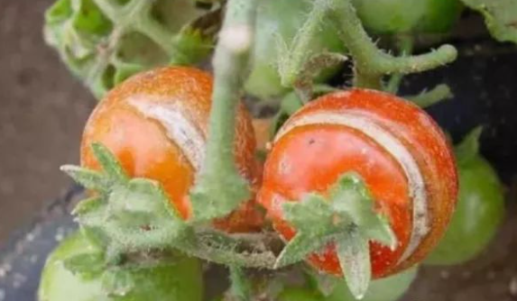 番茄裂果一般發(fā)生在綠熟期和轉(zhuǎn)色期,裂果的根本原因是果皮的生長速度趕不上果肉的生長速度,這與果皮的韌性有很大的關(guān)系,冬茬番茄果實的水分含量比較高,果皮韌性不足就容易裂果。 為了防止番茄裂果,我們除了種一些抗裂性好的品種外,增加果皮的厚度和韌性也是很重要,日常栽培管理中,番茄結(jié)果期需要減少氮肥的施入,增施磷鉀肥,番茄采收前15-20天噴施0.7%氯化鈣溶液和0.1%的硼砂溶液,增加果皮韌性,減少裂果。在澆水上,水分要均衡,防止久旱后過濕,冬茬番茄蒸騰量比較小,澆水頻次和澆水量也都要減少,一般10天左右澆次水,每次每畝地澆水10方左右。