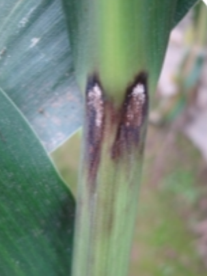 作為玉米生育中、后期病害,玉米鞘腐病主要危害葉鞘,核心發(fā)病期集中在玉米籽粒形成至灌漿充實(shí)期,典型癥狀表現(xiàn)為 “黑褐色腐爛”:
