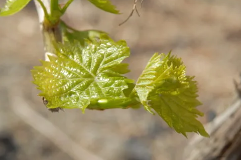 初春氣溫逐漸變暖,葡萄休眠芽開(kāi)始萌芽,稱之為萌芽期。新梢從短梢或長(zhǎng)梢(一年生枝)上保留的芽發(fā)出,或從兩年生枝上休眠芽發(fā)出(主蔓、頂部或枝干),稱之為生長(zhǎng)枝。一些新梢也可能是從地表下葡萄樹(shù)基部發(fā)出來(lái)的,稱之為根蘗枝。