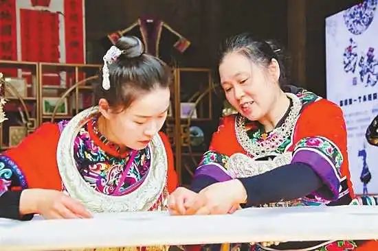 畫外音:“千萬工程”十分重視傳承弘揚傳統(tǒng)農(nóng)耕文化和優(yōu)秀民俗文化。浙江金華市婺城區(qū)安地鎮(zhèn)巖頭村有扎染、刺繡的傳統(tǒng),當?shù)赝ㄟ^創(chuàng)建共富工坊形式,既保護傳承了非遺技藝,又讓村民在家門口就業(yè)增收,一舉多得。彭水苗繡非遺工坊是對浙江共富工坊經(jīng)驗的學(xué)習(xí)借鑒,因地制宜走出了一條“非遺+”的共富路子。