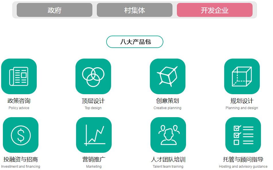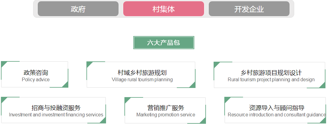 針對來自政府、村集體、開發(fā)企業(yè)這三類不同的鄉(xiāng)村旅游實(shí)施主體,山合水易提供了不同的解決方案,來應(yīng)對不同主體在各自層面面對的實(shí)際問題。