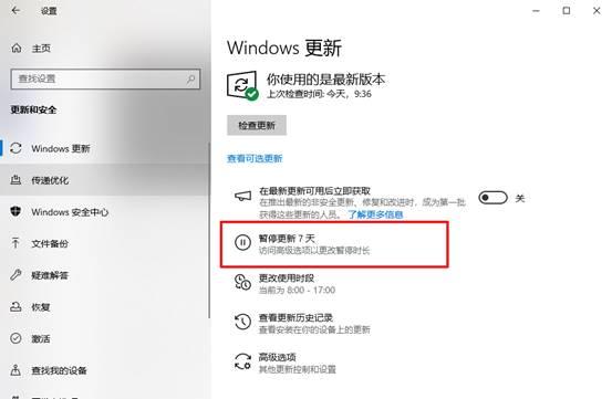 Win + I 打開 "設(shè)置" → "更新和安全"。選擇 "暫停更新 7 天",或者在 "高級選項" 里選擇更長時間。