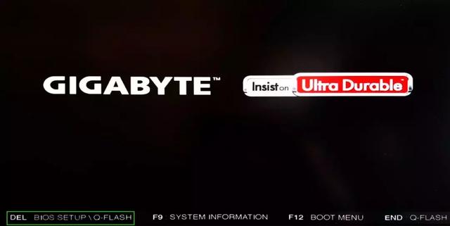 如果不確定主板型號,可以查看 POST 期間,顯示器屏幕下方是否出現(xiàn)提示,技嘉主板(GIGABYTE)通常會在開機的時候屏幕下方出現(xiàn)提示信息: