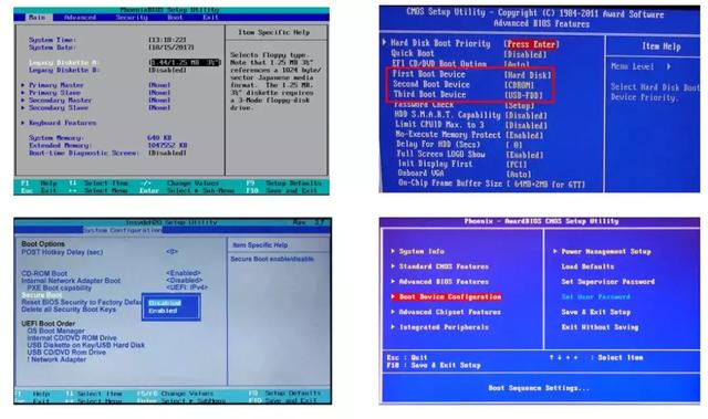 要在此類BIOS中修改啟動項,需抓住幾個關(guān)鍵單詞Boot, Hard drive, Priorities, Order.