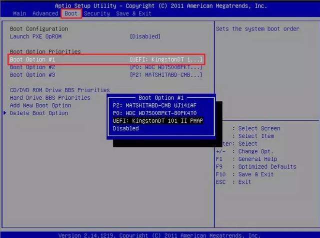 所以,要修改從電腦U盤啟動,就需要將U盤設(shè)置為第一啟動順序,也就是需要將Boot Option #1修改為U盤(確保U盤在進(jìn)入BIOS時就已經(jīng)插入到筆記本)