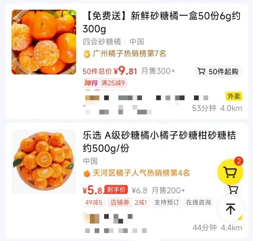 餓了么中,依銷量優(yōu)先排列,不同商家不同品種的砂糖橘價(jià)格不一,但大部分砂糖橘的價(jià)格每斤都在10元以上。